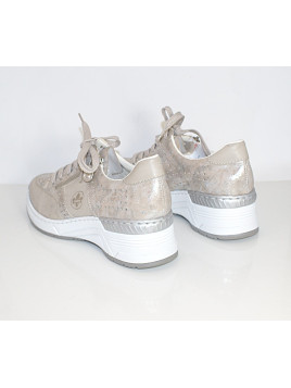 Firma Rieker prezentuje najnowszy model botków zimowych, z kolekcji jesienno-zimowej w kolorze beżowym.