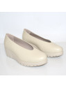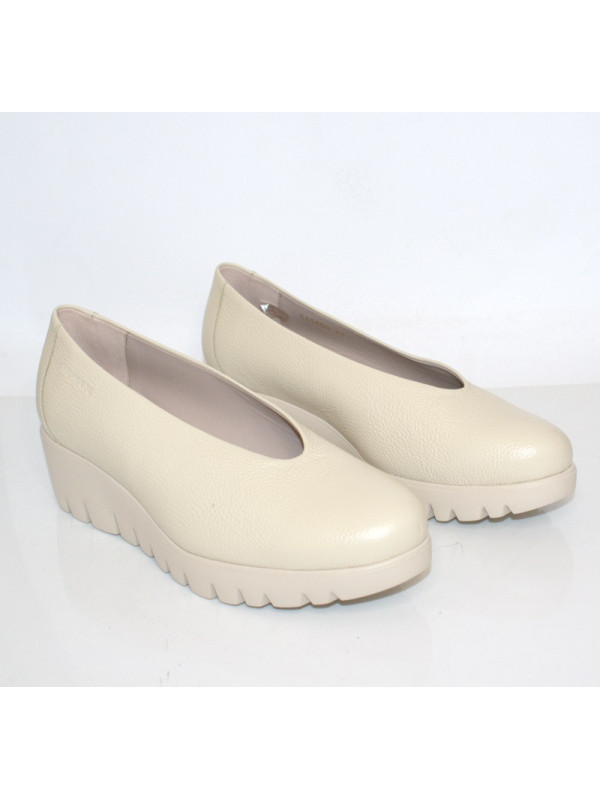 Obuwie wykonane z wysokogatunkowej skóry naturalnej w odcieniu beżowym . Wnętrze również wyściełane skórą naturalną. Całość oparta na klinie o wysokości 5cm. Wkładka wykonana z technologią Wonders Fly. Lekka i odporna na ścieranie podeszwa wykonana z najwyższej jakości tworzywa sztucznego. Nosek zwężony, lekko uniesiony ku górze. Model półbutów, który wpisze się w wiele stylizacji zapewniając nam elegancki oraz modny wygląd.