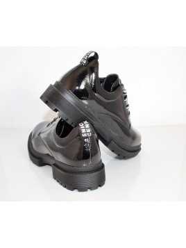 KOLOR : Czarny MATERIAŁ ZEWNĘTRZNY : Skóra zamsz / lakier MATERIAŁ WEWNĘTRZNY : Skóra licowa WKŁADKA :Skóra OBCAS/ TYP/ WYSOKOŚĆ : 5cm platforma TĘGOŚĆ : F