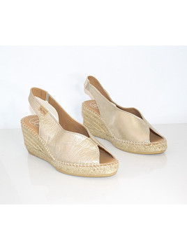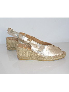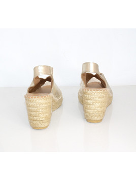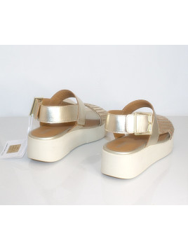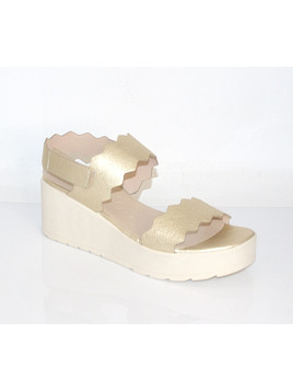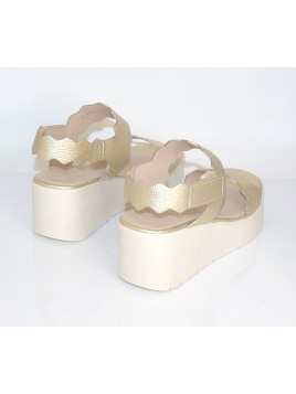 KOLOR : Złoty MATERIAŁ ZEWNĘTRZNY : Skóra naturalna WKŁADKA : Miękka żel OBCAS/ TYP/ WYSOKOŚĆ : Koturn 6 cm TĘGOŚĆ : G