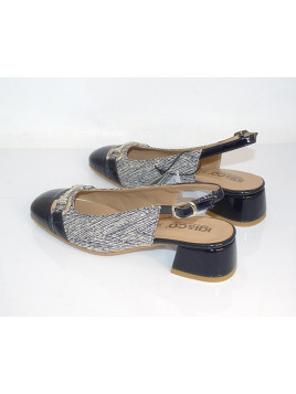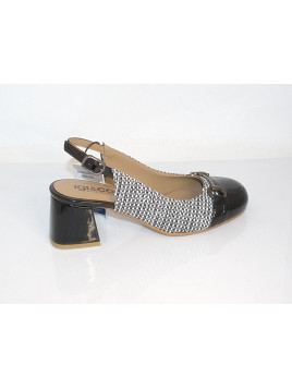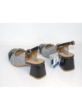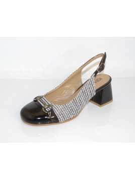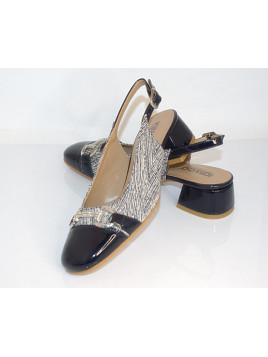 KOLOR : Czarne MATERIAŁ ZEWNĘTRZNY : Lakier i materiał WKŁADKA : Skóra naturalna OBCAS/ TYP/ WYSOKOŚĆ : 5cm TĘGOŚĆ : G