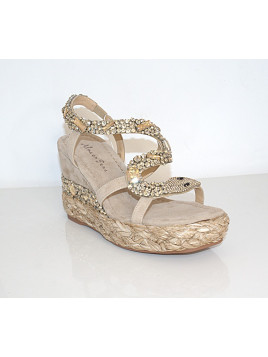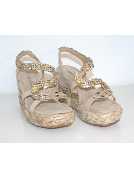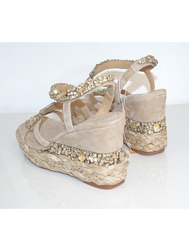 KOLOR : Beż MATERIAŁ ZEWNĘTRZNY : Welur WKŁADKA : Materiał OBCAS/ TYP/ WYSOKOŚĆ :Koturno 9cm TĘGOŚĆ : G