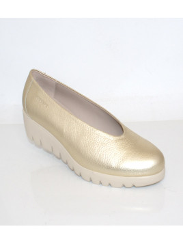 KOLOR : Złoty MATERIAŁ ZEWNĘTRZNY : Skóra licowa WKŁADKA : Miękka OBCAS/ TYP/ WYSOKOŚĆ :Klin sport TĘGOŚĆ : G