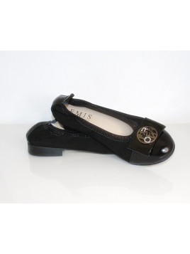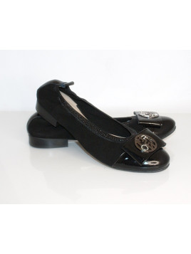 KOLOR : Czarny MATERIAŁ ZEWNĘTRZNY : Skóra zamsz/lakier WKŁADKA : Miekka wyjmowalna OBCAS/ TYP/ WYSOKOŚĆ : 1cm TĘGOŚĆ : G