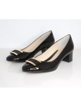 KOLOR : Czarny MATERIAŁ ZEWNĘTRZNY : Skóra lakier WKŁADKA : Miekka skóra OBCAS/ TYP/ WYSOKOŚĆ : 5cm TĘGOŚĆ : G