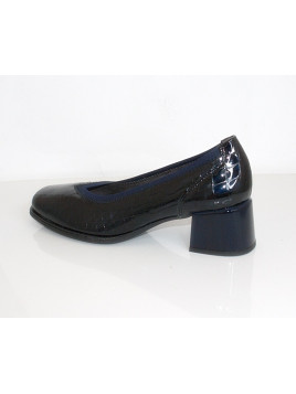 KOLOR : Granatowy MATERIAŁ ZEWNĘTRZNY : Skóra lakierowana / kroko WKŁADKA : Miękka wymienna OBCAS/ TYP/ WYSOKOŚĆ : 5cm TĘGOŚĆ : G