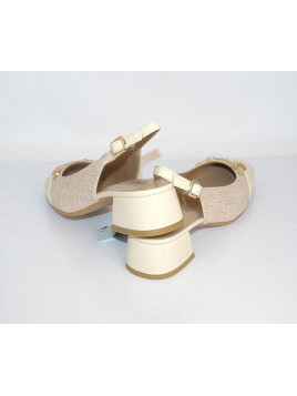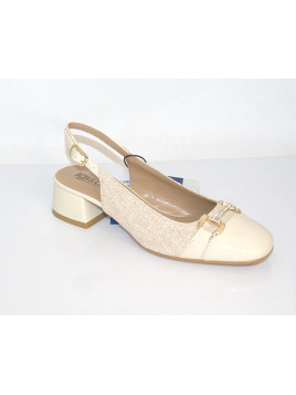 KOLOR : Krem MATERIAŁ ZEWNĘTRZNY : Lakier i materiał WKŁADKA : Skóra naturalna OBCAS/ TYP/ WYSOKOŚĆ : 3cm TĘGOŚĆ : G