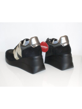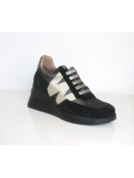 Model wykonany według idei eco-friendly, ergonomic oraz flexible- co w konsekwencji rzutuje na wyjątkowe odczucia użytkowo - wizualne. Wykonane z naturalnej skóry lakierowanej ( naplak - skóra lakierowana parzona ), wewnątrz komfortowa wkładka, dopełnienie to lekka platfotma, ozdoba z tworzywa sztucznego.