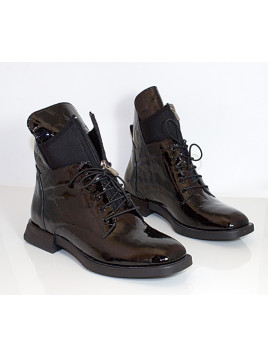 KOLOR : Czarny MATERIAŁ ZEWNĘTRZNY : Skóra lakier naplak WKŁADKA : Ocieplacz fizelinka OBCAS/ TYP/ WYSOKOŚĆ : 2cm /obcas TĘGOŚĆ : G