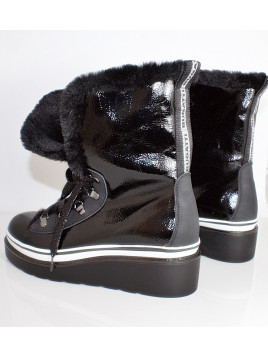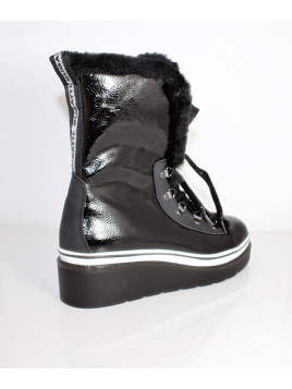 KOLOR : Czarny MATERIAŁ ZEWNĘTRZNY : Skóra -Eko lakierowana WKŁADKA : Miękka OBCAS/ TYP/ WYSOKOŚĆ : 4 cm TĘGOŚĆ : G