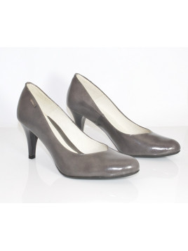 KOLOR : Szare MATERIAŁ ZEWNĘTRZNY : Skóra lakier WKŁADKA : Skóra naturalna OBCAS/ TYP/ WYSOKOŚĆ : 8 cm TĘGOŚĆ : G